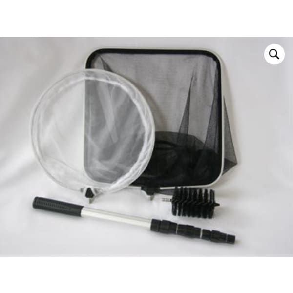 Combination of Pond catching net, pond skimmer net, pond cleaning brush and 1.7 m telescopic pole.Β Ideal for all pond cleaning and maintenance. Very versatile and easy to store.